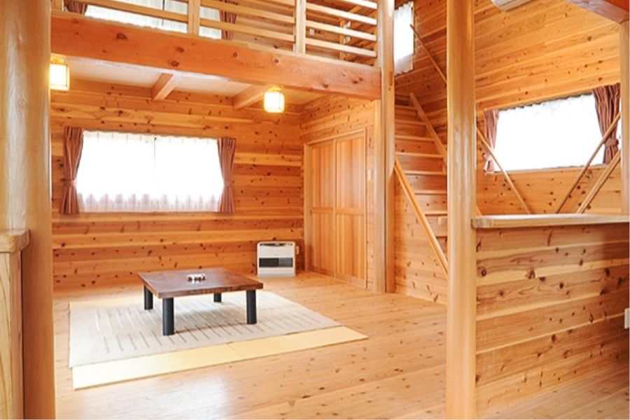 バンガロー宿泊 チェックインしてエアコン、冷蔵庫オンしてあったのが嬉しかった 子が二階建てベットを楽しみにしていましたが、 二階の高さが思った以上に高く親としてはドキドキです。子は楽しんで登ってました。 温泉施設も隣接、アスレチックもあり山々の景色、自然を堪能できました。 焼き網、炭の販売もあるので安心です。 帰りは宝牧場でソフトクリーム、近くで甘いものも楽しめます。 次は夜ご飯宝牧場の焼き肉も良いかな