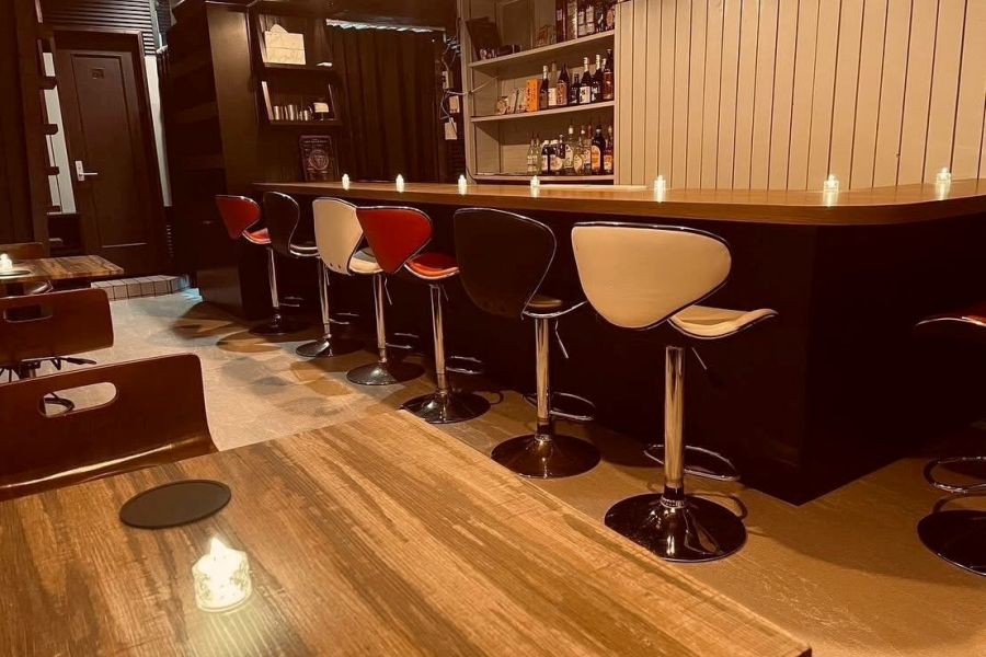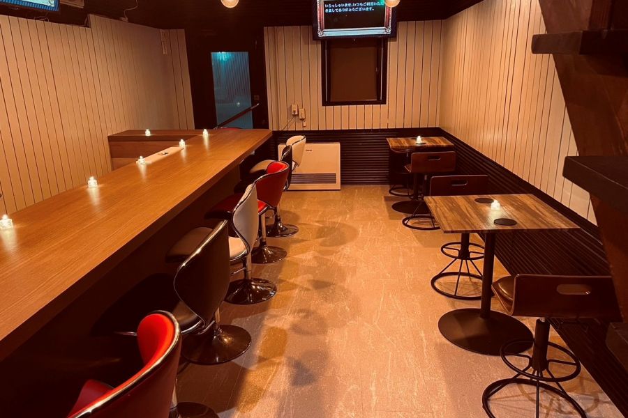 当店のこだわりは、AIが搭載された最新のカラオケ機種を設置し「うたスキ」が絶対満足できるカラオケに対応!また、大手カラオケ店より安い『60分:1,000円税別(飲み放題/お菓子食べ放題付き)』にすることで、地域に愛される。~あなただけのお気に入りの店~を感じられます。カウンターは8席でマスターと会話をしながら飲みたい方にオススメです。自分でお酒をつくる完全セルフの2階は12名が座れるテーブル席で、大画面でスポーツ観戦やカラオケを楽しむことができます。