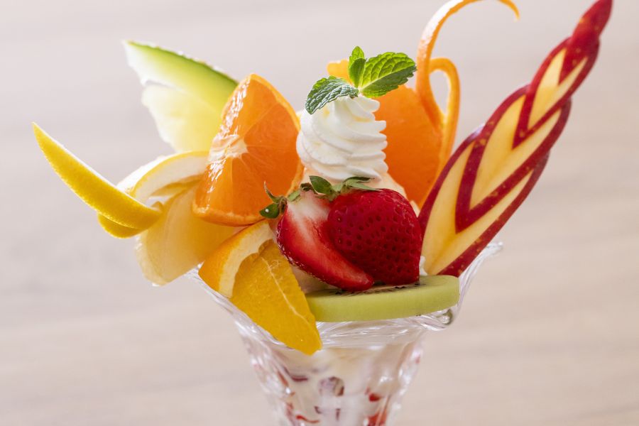 1974年創業の青果商が開いたフルーツパーラー。柑橘の皮を器にし、果汁を固めたゼリーが入っているクリケットゼリーが名物商品です。フルーツで季節を感じていただけるようフルーツサンドやフルーツパフェなど季節限定商品もご用意しております。京都観光の休憩に是非お立ち寄りください。