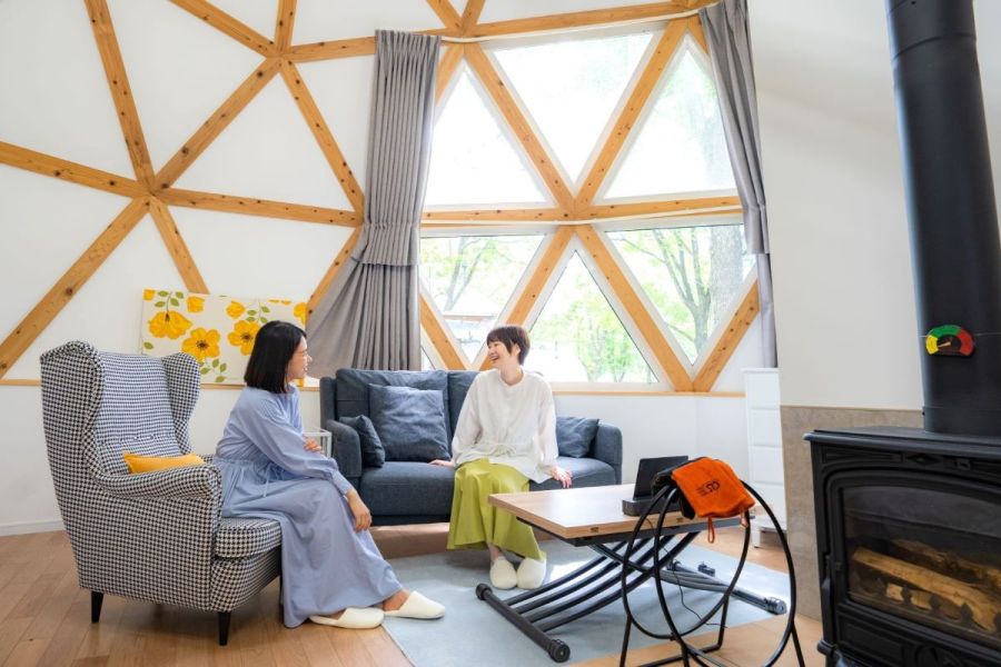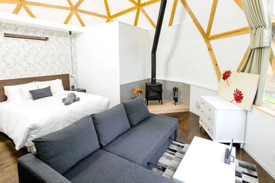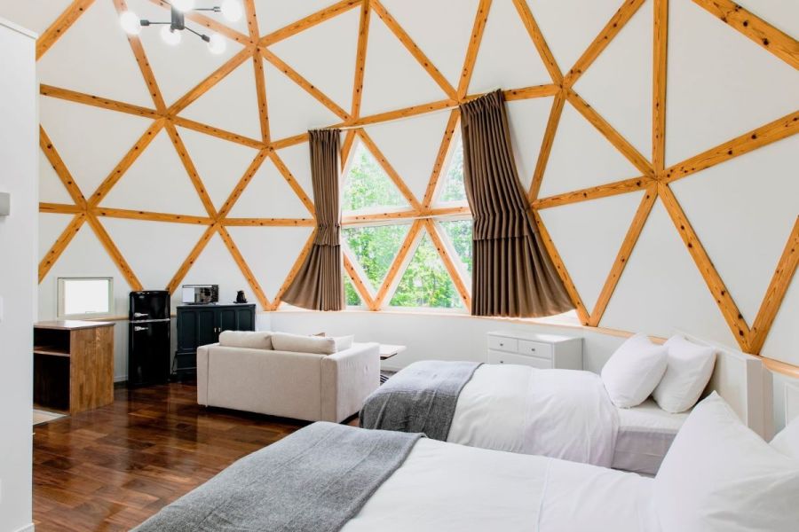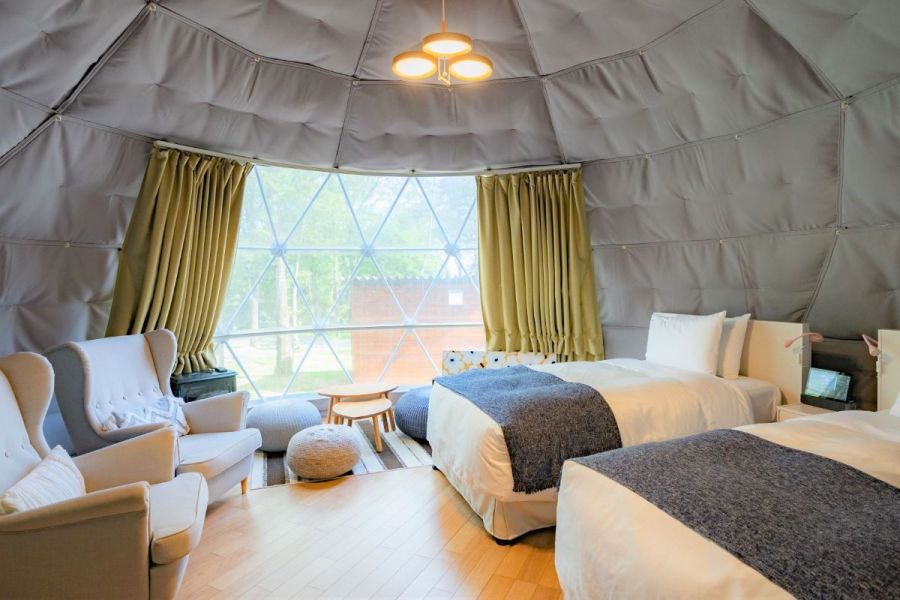 静かな森に囲まれたきれいなドームはホテルのようにオシャレなインテリア。UDをうたっているプランだけあって水回りも広くて掃除も行き届いてキレイ。リファのシャワーヘッドやドライヤーもついており、夜はフカフカのリネンでぐっすりでした。 犬同伴のお部屋でしたが、ワンコのグッズも充実しており、大変助かりました。 なんと言っても食事が最高!ドームに併設の個室で至れり尽くせりに準備していただいたガスオーブンで焼くだけ楽ちんBBQ、前菜から始まってお肉もお魚もホタテもお野菜もパンもどれも美味しかったです。朝の涼しい空気の中での朝食まで、ノーストレスで最高に充実した癒しのグランピング体験でした。お世話になりました。