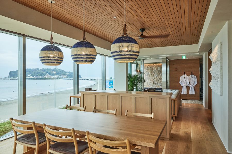 友人達と二階のお部屋に5人で宿泊しました。 チェックインしてすぐに感じたのは広さと開放感。 特に窓からの景色が素晴らしく朝や夕方は海と空のグラデーションが目に飛び込んできてずっと眺めていたくなるほど。 江ノ島という立地を体感できる滞在でした。 室内の設備も高級感がありつつ居心地の良さを重視していてベッドルームやリビングスペースにもゆとりがあります。 スタッフの対応も丁寧で案内やチェックイン・チェックアウトのプロセスもスムーズ。 冷蔵庫にはソフトドリンクやお酒も揃っていました。 江ノ島と海を眺めながら入る露天風呂は格別です。 部屋の中にサウナも併設されていました。 ビーチサンダルのプレゼントもあり、目の前の海で遊ぶこともできました。 もし鎌倉や江ノ島近辺でゆったり過ごしたいならUMITO腰越は特別な滞在になると思います。 窓からの景色と海に包まれる時間をぜひまた味わいたいです。