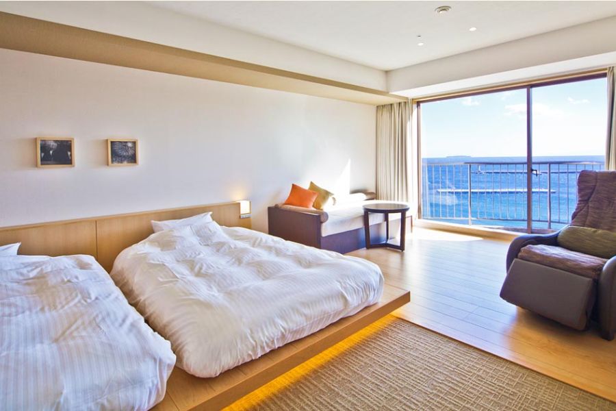 洋のインテリア空間に、和風テイストを加えた、熱海シーサイドスパ&リゾートのゲストルーム。露天風呂付きのスイートルームや、女性の方におすすめのアジアンルーム、グループ、ファミリーでの利用に最適なファミリールームなどご利用シーンにあわせた様々な客室をご用意しています。窓に広がる熱海の海を眺めながら、極上の休日をお過ごしください。