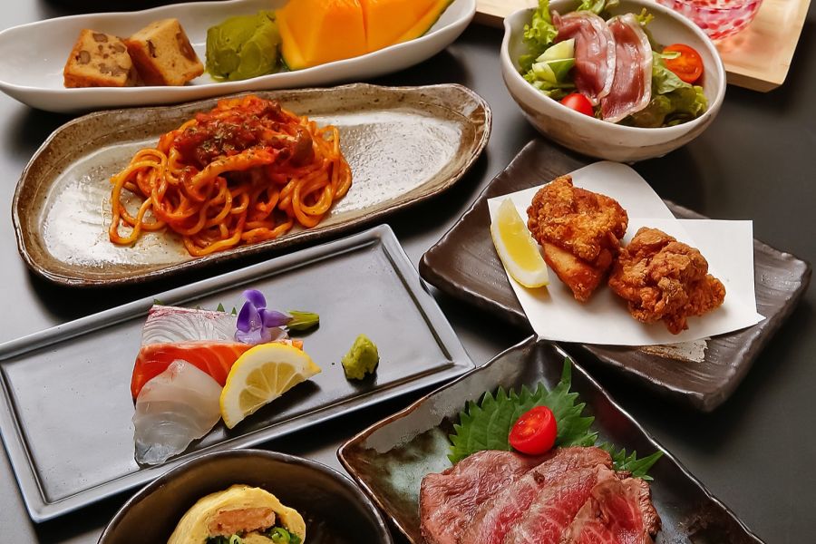 非日常的な空間でありながら、日常の生活の寄り添った本質的なものを感じられる優しさに満ちた落ち着いた空間で、日本ならではの四季の旬を体感できる食と空間になっております。ランチでは彩り豊かで和牛や海鮮などとおばんざいが楽しめる三種丼プレート、カフェでは目の前でとろけるシアードチーズケーキやオリジナルコーヒー、ディナーでは日本酒・ワインを中心に絶品和食アラカルトや特別なコースを楽しめます。店内は少人数に適した落ち着いた空間で、カップルやご夫婦はもちろん、ご家族や接待、少人数の女子会や宴会などに最適な空間となっております。すべてにこだわった空間で最高のお食事をお楽しみください。