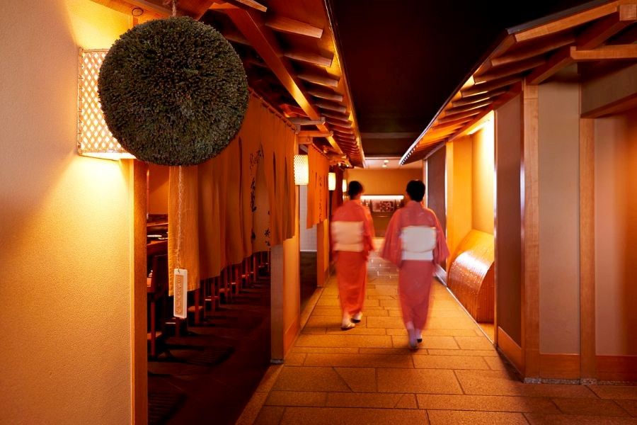 和食料理の専門店が立ち並ぶ味街道。7つの和食専門店と9つの個室がある日本食レストラン。東京の景色だけでなく、晴れた日には富士山や甲府方面まで眺められることから、東海道五十三次の宿場町の名前がそれぞれの専門店に名づけられました。