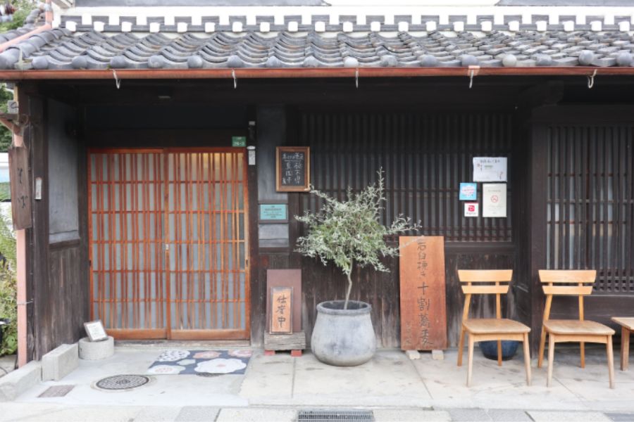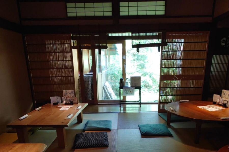 丹波に小旅行に行く道すがら、ランチでお邪魔しました。Googleマップで見つけて初めて訪れたのですが、あまりの人気ぶりに目を白黒させてしまいました。 幹線道路から車一台ギリギリの生活道路にそれた場所にあるので、接近にかなり注意が必要です。店横に18台分駐車場が用意されていますが、とにかく人気なのでひっきりなしに車が出入りします。 11時開店で我々は11:15頃に入店しましたが、最後のテーブル席が空いていたので待つことなく席に着くことができました。恐るべし人気店。 古民家を改修した店内は清潔かつ美しく設えられており、広い窓から見える竹藪などの景色は心を和ませてくれますが、とにかく流行りすぎ。入れ替わり立ち替わりひっきりなしに客が出入りし、落ち着いて食事を楽しむ雰囲気ではありません。 十割蕎麦を売りにしておられるようで、料理も手際よく提供されましたので、よく頑張っておられるなと思いましたがとにかく客が詰め掛けすぎ。駐車場に誘導の方を一人配置しておられましたが、車の出入りも道が狭いのでなかなかスムーズに行かず、そういった点で少しストレスを感じてしまいました。 もしありえるなら客の少ない時間帯に窓外の景色を眺めながらゆっくりとした時間を楽しめれば、ものすごく雰囲気のあるお店だなと思いました。