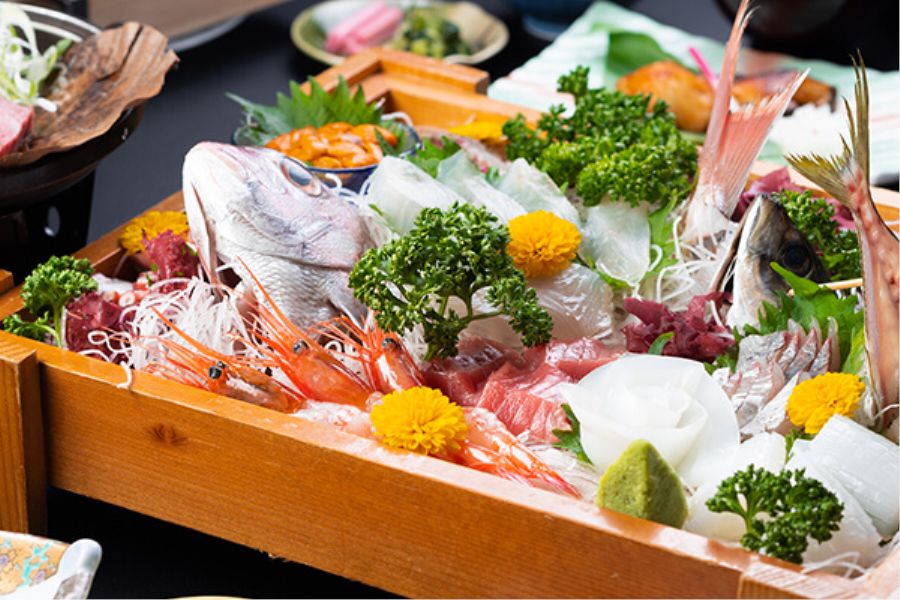 この盛り合わせは圧巻の一言に尽きます。目の前に広がるのは、鮮度抜群の海の幸がぎっしりと詰まった豪華な一皿。エビ、タコ、サーモン、マグロ、ウニといった多種多様な魚介が色鮮やかに並び、それぞれが輝いています。 中央に鎮座するウニは濃厚な旨味が口の中で広がり、海の恵みを存分に感じられる味わい。一方、エビの甘みと歯ごたえ、タコの弾力のある食感など、一つ一つが個性的で、味覚の冒険を楽しむことができます。また、大葉や菊花といった彩りや、添えられたパセリの緑が視覚的にも楽しませてくれる点が素晴らしいです。 新鮮な刺身を心ゆくまで味わう贅沢なひとときを提供するこの民宿は、食事にこだわりを持つ方にぜひ訪れていただきたい場所です。地元の海の幸のポテンシャルを存分に引き出した、この盛り合わせは、まさに「粋」そのもの。特別な場面での一品としてもおすすめです。 総評: 美味しさだけでなく、見た目の美しさや新鮮さ、地元の食材へのこだわりが感じられる逸品。三岬を訪れたら、ぜひこの海鮮盛り合わせを味わうべきです!