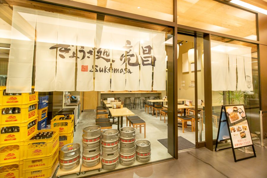 京都・高辻で生まれた「ぎょうざ処 亮昌(すけまさ)」。地産地消を心がけた餡には、京都市長賞を受賞した伏見・中嶋農園の「キャベツ」や、自慢の霜降り豚「京の豚 もち豚」京の伝統野菜「九条ネギ」などを用いております。一般的な餃子と違いかつおだしをベースとし、京の料亭御用達「山利」のまろやかな味噌を加えて京風の上品な味わいに仕上げた、にんにくの風味が気にならない「和のぎょうざ」としてもご好評いただいております。烏丸御池のアジア初のエースホテルが建つリニューアルした【新風館】に店舗を構えておりますメニューは、亮昌ぎょうざを中心におばんざいや唐揚げなど居酒屋メニューが数種あります。