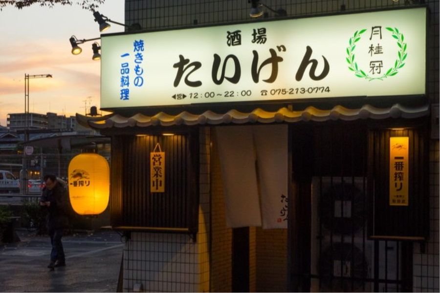 京都市役所の並びにある、昼から呑める「酒場 たいげん」。地下の扉を開けると広がる畳張りで、古きよき酒場のように落ち着いて美味しい肴で呑める居酒屋です。ランチタイムからの通し営業ですので時間を忘れて過ごせます。自家農園のお野菜やその日の仕入れのお刺身など、酒場らしく安価で美味しいお料理をご用意しております。全席お座敷テーブル席で、掘りごたつ席もございます。お一人様のご利用から宴会にもご利用いただけます。京都観光の際にもふらっとどうぞ!!皆様のご来店心よりお待ちしております。