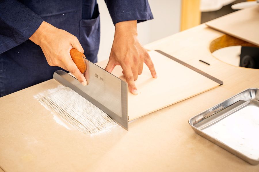 蕎麦打ちの基本に忠実に、粉から切るところまでひとつひとつ丁寧にお手伝いします。