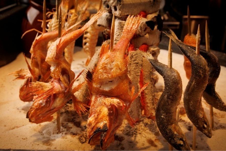 赤坂見附から徒歩3分。 2025年5月にオープンした、路地裏に佇む隠れ家的な居酒屋『炭火焼きしんかい』に行ってきました。 ◇メニュー ・キンキの一本焼き 4,390円 ・お造り五種盛合わせ(一人前) 1,750円 ※二人前から注文可能 ・ぷりんたい(海鮮痛風盛) 1,750円 ・鯖の棒鮨(1個) 540円 ・蟹クリーム春巻き(1個) 650円 ・旬果実の生ハムチーズ 980円 ※価格は税込価格 店内は落ち着いた雰囲気で、カウンター席では原始焼きによって魚を焼く様子が目の前で楽しめる。 原始焼きでは魚や肉を串に刺し、炭火の周りに立てかけてじっくり焼き上げるのが特徴。 目の前で塩を振る迫力やライブ感がたまらないお店。 「キンキの一本焼き」では、30分程じっくり焼き上げることで外はパリッと、中はふっくらとした食感が楽しめる。 他にも脂の乗った「鯖の棒鮨」や、高級海鮮が贅沢に乗った「海鮮痛風盛」などどれも華やかで味も間違いないものばかり。 落ち着いた最高な雰囲気なので接待やデートにもおすすめ。 原始焼きはぜひ目の前で体感してもらいたい。