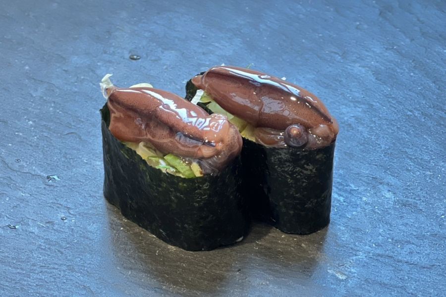 【金沢駅から徒歩0分の海】 駅のロータリー横にある粋な回転寿司。 金沢駅を降りた観光客に向けたお料理といった感じ、地魚を多く扱っている印象でよくある回転寿司屋とは一線を画している。 回転寿司といっても流れているのは立て札だけで注文はタッチパネル操作。 確定ボタンを押すとカウンターの中にいる板前さんが作ってくださる、Live感覚も見ていて楽しいし提供もスピーディー、思いやりの一声も掛けて下さる優しさが嬉しい。 またカウンター内とホールの連携が素晴らしく提供と同時に空いた皿の回収もこまめにやってくださる。 声の掛け合いも良い、仲間同士仲が良さそうな様子が伝わってくる。 今回食べたかったのは「香箱ガニ」。 ズワイガニのメスで外子(卵)と内子(未成熟卵)、カニ味噌が特徴の冬にしか味わえない一品。 小ぶりの割に高くて震えましたが味は濃厚でうなるほど美味しい。 注文して良かったな、ご馳走様でした。