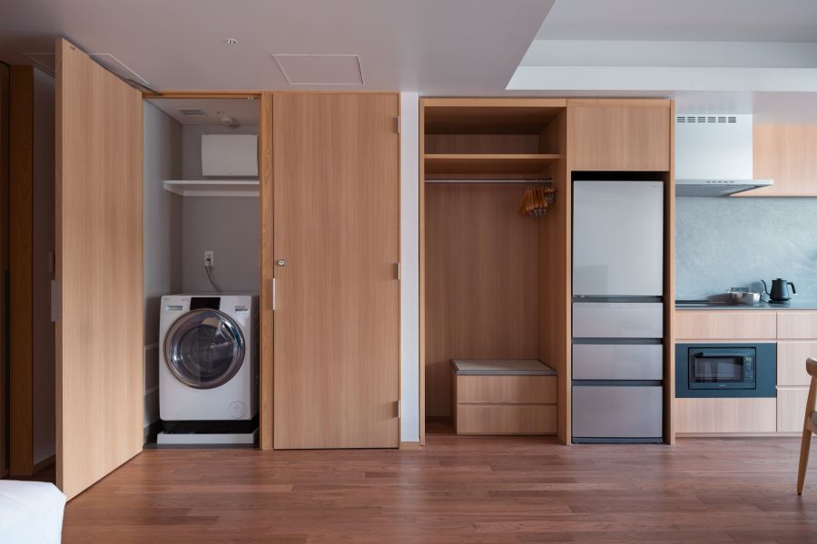 白馬のエコーランド内の新しいホテルです。まだ静かな通りにありますので、繁華街の中でも落ち着いて過ごせます。 真夏なのに、ベランダに出て山々を眺めていると爽やかな風が吹いてきます。 別のホテルから移籍したスタッフも多く、初めて宿泊したホテルには感じられず、久しぶりに戻ってきた感覚に包まれていました。 室内は、リビングダイニングが広めにとられており、別にテーブルも用意されています。 それぞれの家具は設えが良く、安定感があり快適でした。 CadoのSTEM 300加湿器は冬場には、重宝するはずですが、エアコンで乾燥した室内であっても快適に過ごせました。 収納も沢山あり、ハンガーラックも3つあり、棚も沢山あり、引き出しも十分にあります。 冬場の着替えが多く、重量感がある衣類も困ることはないと思います。 リビングには、本格的なキッチンがあり、大きく深さのあるシンクとレンジフードのついたIHヒーターがあり、 370Lの冷蔵庫、電子レンジ、さまざまなカトラリーは、リクエストすれば、食事に合わせて用意できることが多いとの事です。 浴槽も広く、シャワーの吐出量も問題ありませんでした。レインシャワーもあります。 浴槽とシャワーコーナーと洗面台が一つの部屋にまとめられており、海外のホテルに多いタイプですので、 日本人の私共には慣れるのにやや時間がかかってしまいました。 浴室乾燥など、それぞれのデバイスの使用方法をまとめて頂けると利用しやすいかと思います。 バスルームに隣接して、何とこのサイズの部屋にも縦型ドラム式の大型温風乾燥付洗濯機が用意されていて、本当に便利でした。 今回は夕朝食共に1Fのダイニングを利用しましたが、夕食時にスペシャリテのコースを頂き、朝食時には、幾つかの注文を受けてから個別に作るメニューを含めたビッフェは、先週都内で頂いた朝食と異なり、地産地消の材料ふんだんに使用された白馬らしいメニューも目移りするばかりでした。席のレイアウトも幾つかあり、すべて魅力的ですが、葡萄の苗が配置された席はとても素敵です。 一休さんのご厚意で今回はレイトチェックアウトでしたので、時間いっぱい過ごさせて頂きました。 ベテランの方もお若い方もホスピタリティが素晴らしく、次のシーズンが待ち遠しくなるホテルです。 白馬にまた新しいスモールラグジュアリーが登場しました。