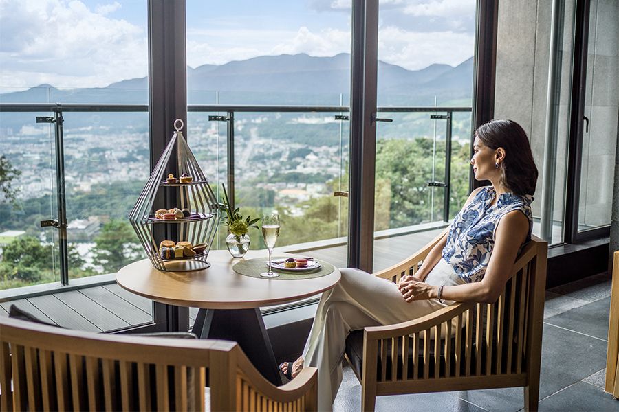 地元の者ですがいつかは訪ねてみたいホテルでした。アフタヌーンティーがあると知り初めての訪問でした。駐車場もわかりやすく豊富で助かりました。スタッフの方々はフレンドリーで優しく語りかけて下さいます。ロビーは想像よりこじんまりしていましたがそこからの眺めは格別でした。スィーツの数々はどれも趣向を凝らしたものばかり。また飲み物も名高いものはもちろん地元の素材も取り入れてあり美味しく楽しい時間を過ごすことができました。ショップの商品は地元の伝統あるものを格式高くアレンジしてあり興味深く拝見しました。