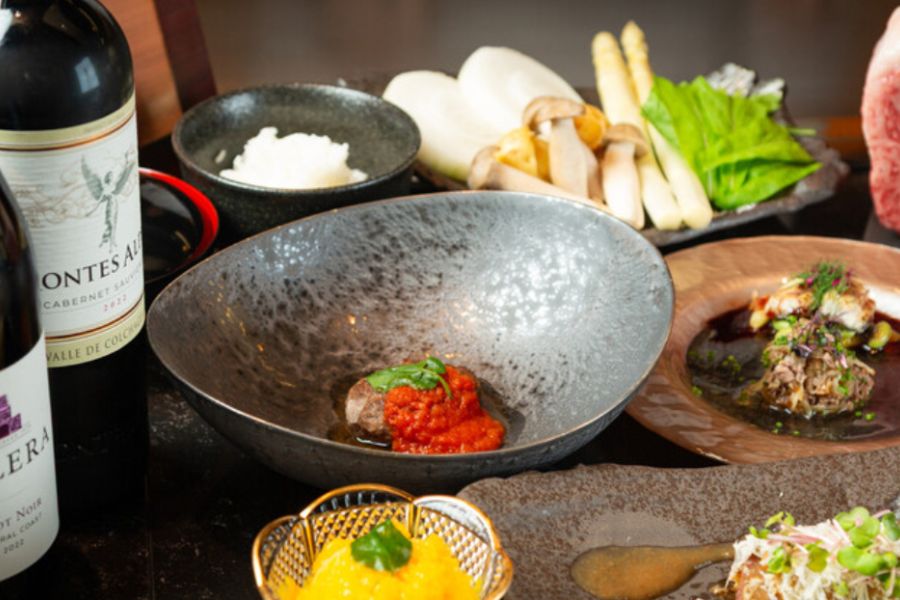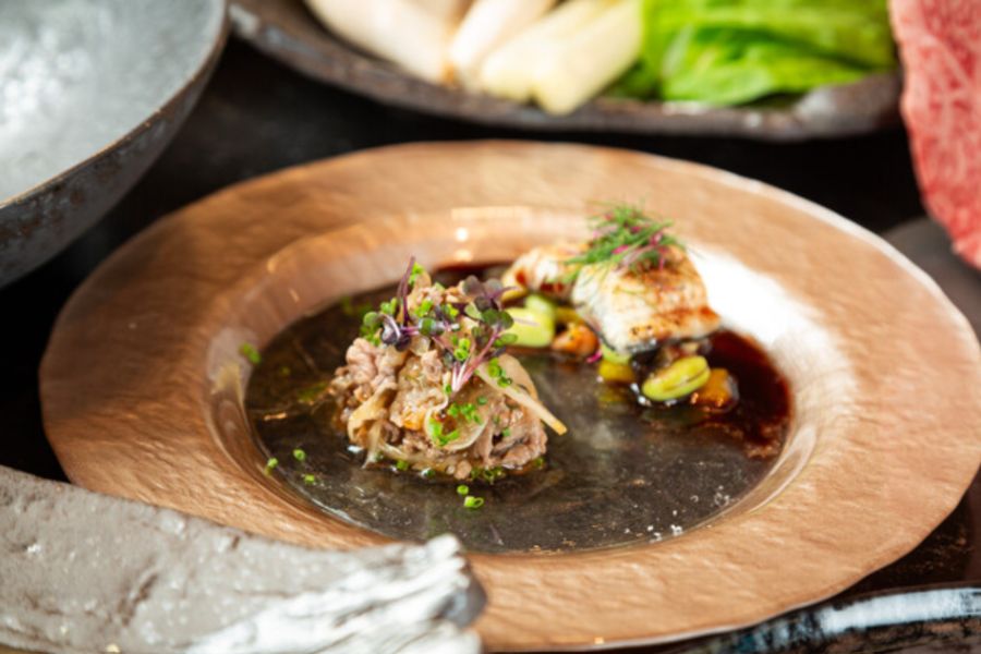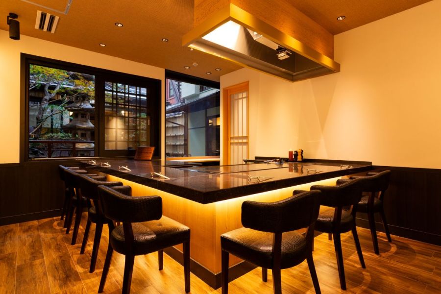 祇園風情のある街並みと調和する町家空間で、京都の四季を体感。北には祇園新橋、東には八坂神社、西には鴨川、京都を代表する花街・祇園。南北に続く大和大路通り沿いには老舗の商店が立ち並ぶ、京都らしい賑わいを見せる街、祇園繩手。そんな賑わいのなか、細い路地奥にひっそりと佇む町家風の建物が、神戸牛鉄板焼き祇園繩手之いちです。古い町屋を改装した店内はモダンな雰囲気とシンプルな町家風情が調和する上質な空間。そんな店内から伝統的な建築様式の離れに続く内庭では、春には桜、秋には紅葉と、京都の四季を望む、贅沢な風景が広がります。
