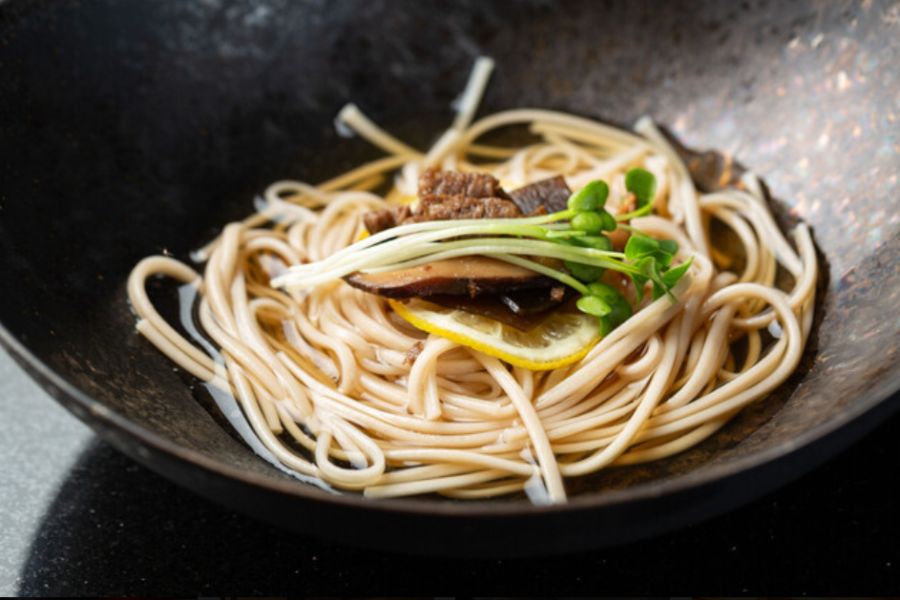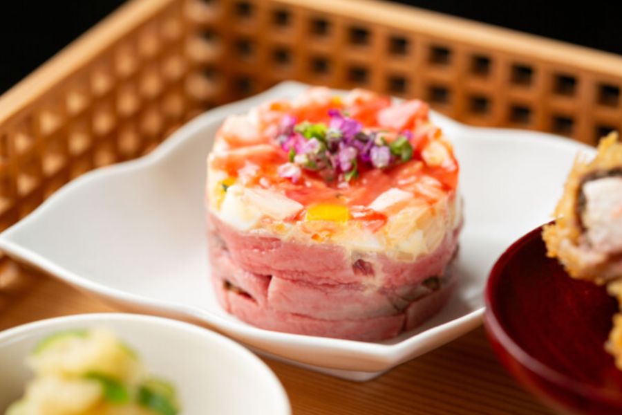 先斗町と調和する、神戸牛鉄板焼き割烹。京都を代表する花街のひとつ、先斗町。鴨川沿いの細い石畳が敷かれた路地には、京都の町屋風情のある伝統的な建造物が建ち並び、夜は軒を連ねるお茶屋や料理屋の提灯の灯りがともる、京都らしい情緒が息づく街です。そんな京情緒ある街並みに調和するように、一見通り過ぎてしまうよう小さな間口の先に、神戸牛鉄板焼き先斗町之いちはあります。玄関を一歩またぐと、京都らしい町屋風情の残る伝統的な和の雰囲気に、少しモダンかつシックな現代風のテイストを組み合わせた空間が広がります。