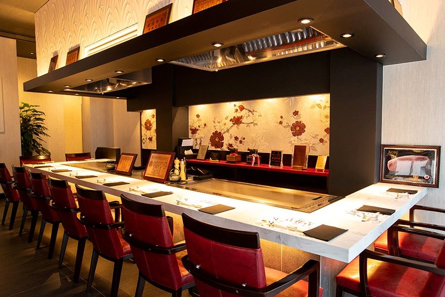 【神戸ビーフ指定登録店】神戸牛を目の前で焼き上げ、LIVE感も楽しめる鉄板焼きの当店。ご用意するお肉は、神戸牛のA5ランクなどどれも最高品質。熟練シェフの手さばきや、時よりの談笑は、お食事を楽しむアクセントとなり優雅な時間をご提供します。赤・黒・白を折り合わせた店内はスタイリッシュかつエレガントな雰囲気。ガラス張りの店内は、高級感が感じられ食事会や各種記念日などに最適です。