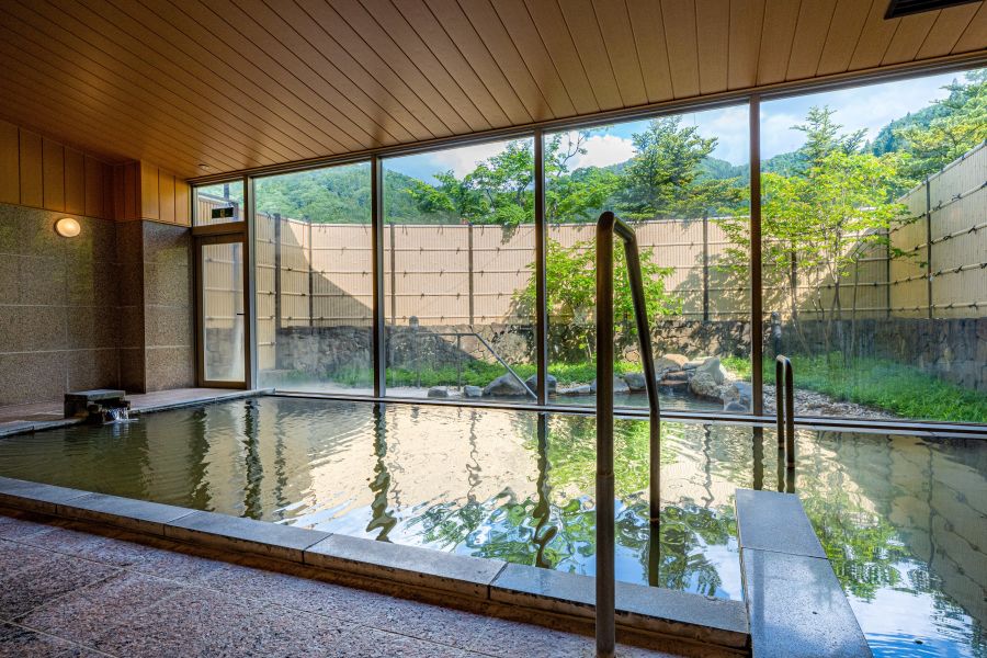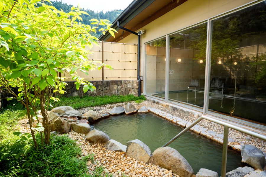"道の駅 小谷"の天然温泉"深山の湯"は、北小谷温泉と風吹荘源泉を湯もみした混合泉の源泉掛け流し温泉です。施設内には露天風呂があり、四季折々の景色を楽しむことができます。また、内湯やサウナも完備されており、心身をリフレッシュするのに最適です。源泉かけ流しの温泉は、ナトリウム炭酸水素塩泉で、美肌効果や疲労回復に効果があります。入浴の後は、レストラン"鬼の厨"でお食事を割引することができます。