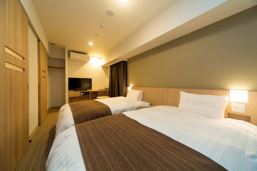 初めて泊まりました。場所は繁華街の近くで便利だと思います。ただ、宿泊者が多いですねーなんかロビーは余り広く無いので、ごちゃごちゃ感がありました。でも、すんなりチェックイン出来たのとウェルカムドリンクでりんごジュースが飲めたので良しとします。部屋に入って驚いたのは、すぐ左手に洗面台があり、正面に扉があったのでちょっとビックリ。開ければ寝室で広さはまあまあです。おトイレに入るとすぐ右側にシャワーブースがあり、良く考えたら、湯船は天然温泉が13階にあるので、入りたい人はそちらにどうぞという事みたいです。なので、洗面所は無く入ってすぐに洗面台があったのです。このレイアウトははじめてでした。サービスは良く、21時30分頃から夜鳴きそば(ラーメン)や風呂場にはアイスや乳酸菌飲料(夜中は無し)チェックアウトの時もテイクアウトのコーヒーなどありサービスを受ける立場としては嬉しいですね。朝食もそれなりに料理も有り満足だと思います。私は部屋風呂も欲しかったので部屋は3点にしました。