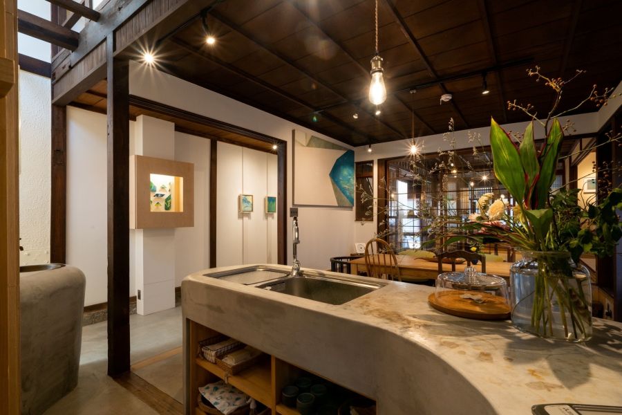 郡上八幡のアートと泊まる一棟貸の町家のお宿です。館内には郡上を題材にしたアーティストによる作品が展示され、美術館に泊まるようにお泊まりいただけます。アート作品は半年に一度入れ替わるので、時期を変えてお楽しみいただけます。町の中心部にあり、お勧めのレストランや町の観光案内をコンシェルジュが行います。春は春祭りや新緑、夏は郡上踊り、秋は紅葉、冬はスキーと、年間を通じて楽しんでいただけます。美しい町家の連なる町並みと元気な町の人との交流が楽しい町です。