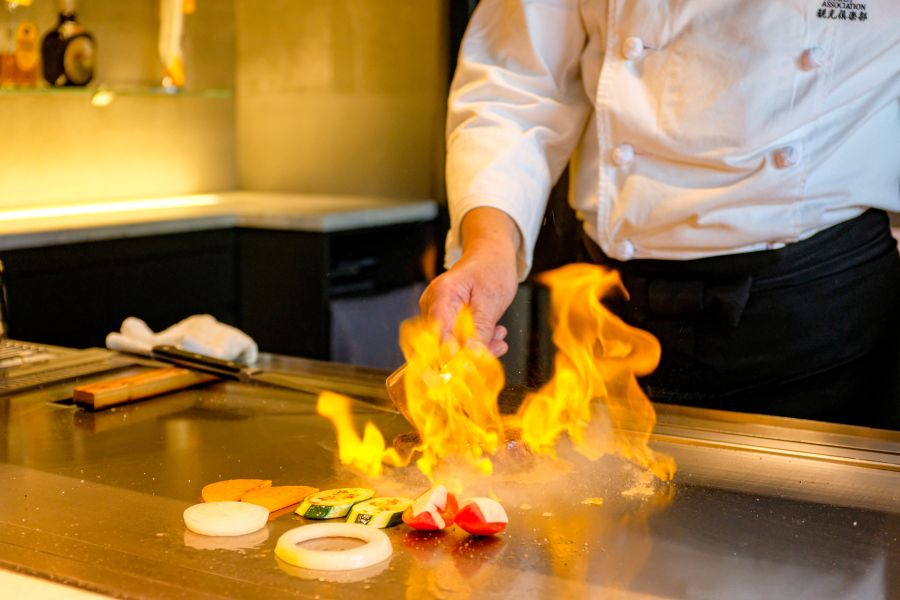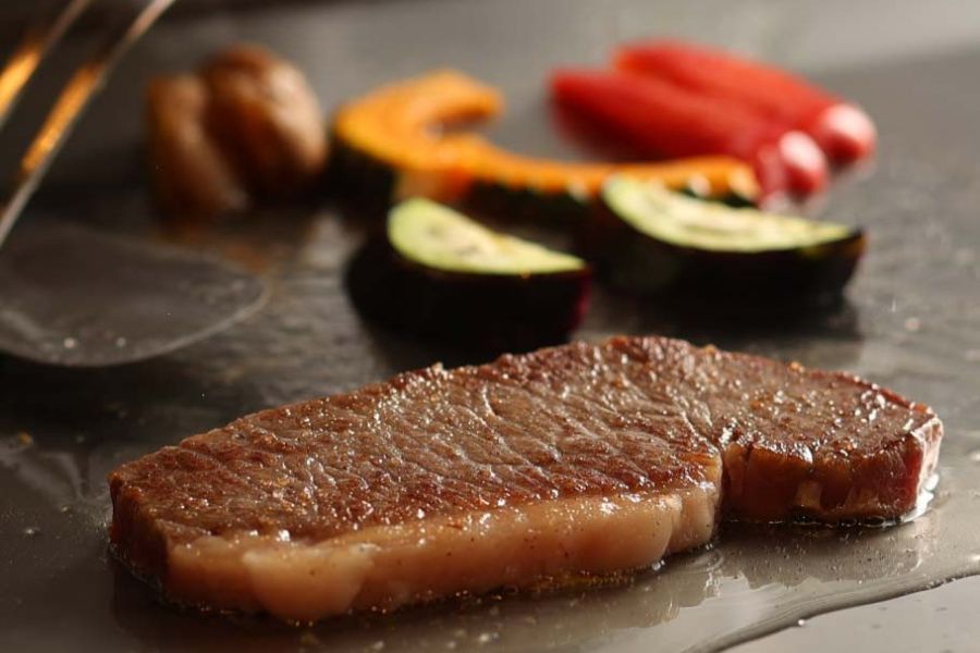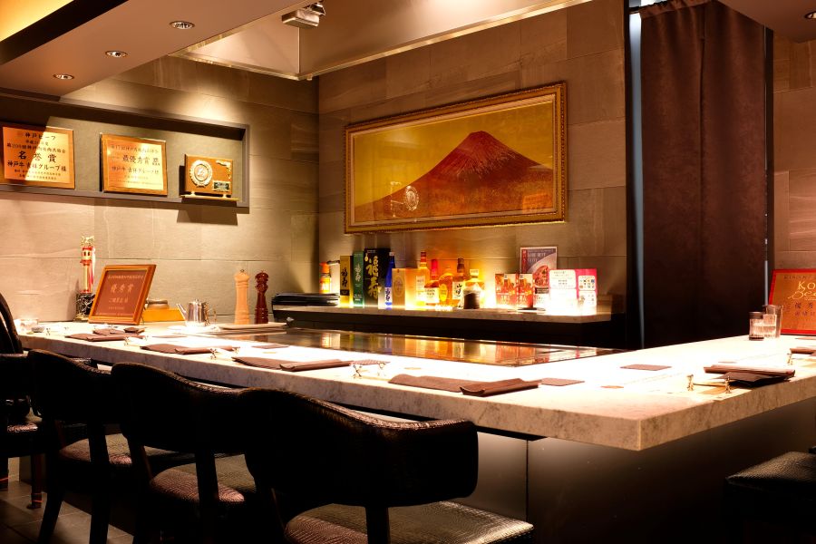 各線三ノ宮駅から徒歩2分。五感で味わう、神戸牛鉄板焼き。全席鉄板焼きカウンター。目の前で繰り広げられる、ライブパフォーマンス。神戸牛の甘さと香りをお楽しみください。