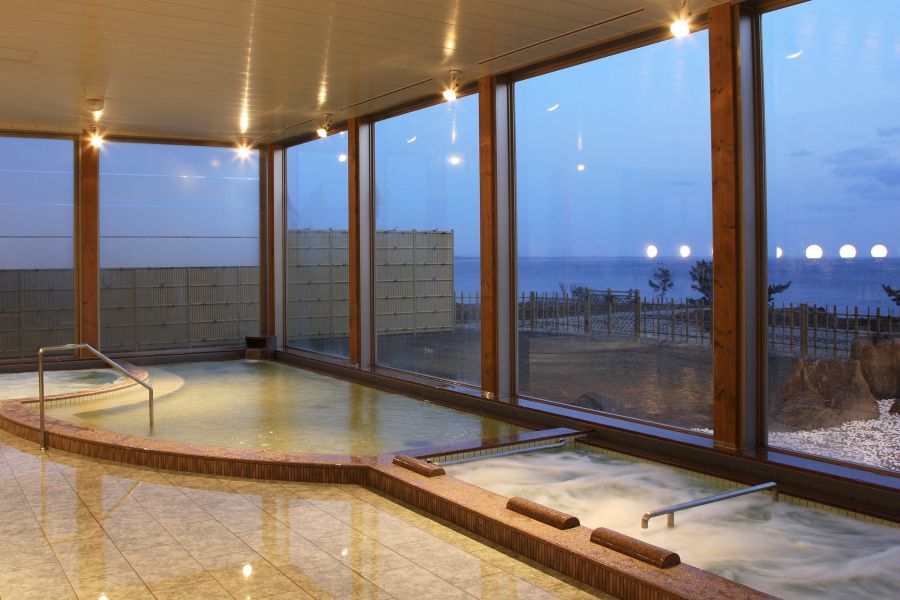 日本海と白神山地が出逢う宿♪ オーシャンビューと地元の新鮮な魚介類を使用した宿泊膳をお楽しみください。JR五能線「あきた白神駅」下車 徒歩3分 秋田自動車道能代東ICまたは能代南ICより車で約30分。お風呂は大浴場のほか気泡浴、寝湯、露天風呂、サウナ、岩盤浴と多彩であり、泉質はナトリウム硫酸塩・塩化物泉です。