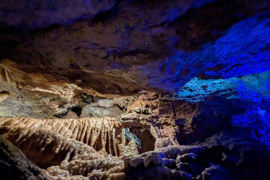 観光用に綺麗に整備された洞窟です。濡れている場所があるので滑りにくい靴がおすすめです。途中、湧水が滝のようになっている箇所があり見応えがありました。涼しいので暑い日は快適です。多くの観光地同様、こちらでも青いLEDで演出がされています。流行りでしょうか。