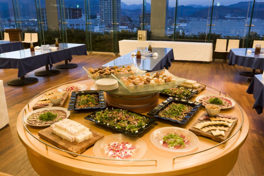 一歩足を踏み入れると、天の光差し込む空中レストラン。時間を忘れるひととき、そして手間を惜しまない料理をお楽しみ下さい。奇を衒わない基本に忠実なお料理とこの土地ならではの食材をメニューに取り入れ、お客様に喜んでいただける料理を心を込めてお作りいたします。和と洋のコラボレーションを是非ご賞味下さいませ。