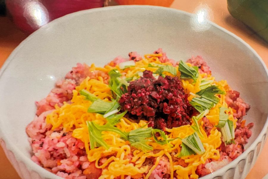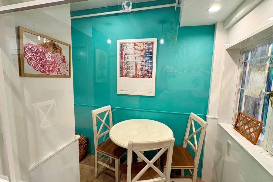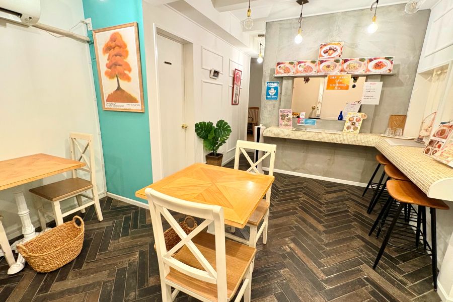 珍しく見た目も鮮やかな「しば漬けの焼きめし」、しば漬けがアクセントで美味しゅうございました! わかめスープはわかめたっぷりで嬉しいです。 店内はカラフルでアート作品が飾ってあったり、すてきな空間です。