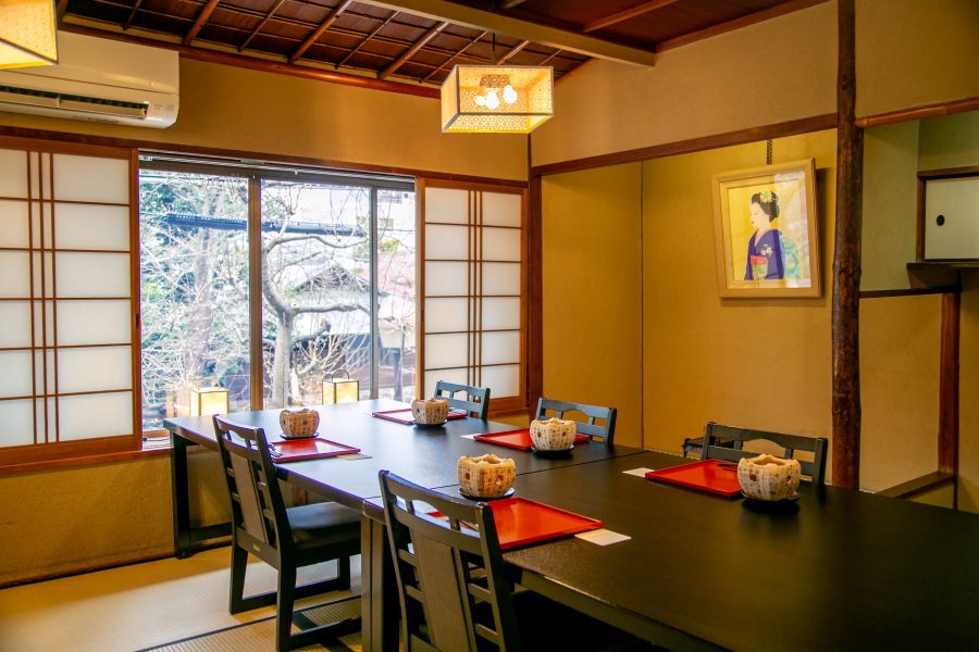 京都市役所駅から徒歩3分、店内は古き良き昔ながらの佇まいを残した個室を多くあり、伝統の数奇造りのしつらえをほどこしたお部屋や高瀬川の季節を楽しみながらお食事していただけるお席など全7室。お料理は旬の食材をつかった和食の技の光る一品や黒毛和牛、すっぽんを手軽にめしあがっていただけるこコースなどご用意。個室でゆっくりお食事をお楽しみください。