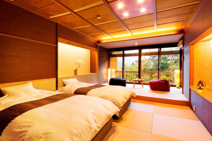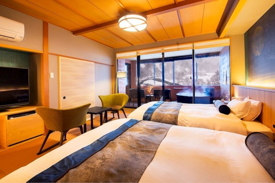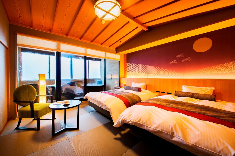 温泉付きの客室でゆっくりでき、リフレッシュできました。温泉に入ると肌がつるつるになりました。また、温泉から出た後は、体がぽかぽかでした。雪肌精のクレンジング、化粧水、乳液が部屋にあり、嬉しかったです。 ラウンジが利用できたので、飲み物の心配も全くありませんでした。日本酒もいただけました。 カメムシが、部屋にまでいたのは、困りました。