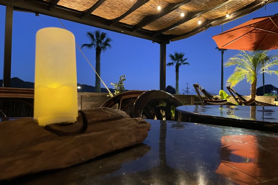 2階の旭という部屋に泊まりました。 目の前が海なので、窓から見えるロケーションは最高です。花火大会がある時はそのまま宿から見えるとの事。 テラスでの海風を感じながらのBBQは、とても気持ち良く酔っ払ってしまいました。パエリアとアヒージョはとても好みの味で美味しかったです。 夫婦で運営しているので、田舎の実家に帰った感じで、とても落ち着けリフレッシュできました。お2人とも雰囲気良かったですよー! エステもやっておりました。旦那さんが居る時は整体もでき、妻が施術を受け価格も安くとても満足してました。