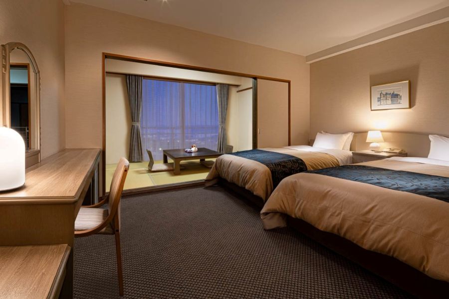 日本のバブルあたりに栄華を誇っていたのであろう面影が、あちこちに見られ人の往来で活気でみちあふれていたのであろう玄関前の花壇に花はなく、人が少なく静かなフロント。 窓から外を眺めると全盛期の頃の情景が目に浮かぶような素敵な景色で、何度も何度も眺めていました。時間で姿をかえていくので何度でも眺められます。駅からは遠くて車もあまり通らなくて静かなので、ボーっと景色を眺めるには最高です。 車の音を聞かなくていい。緊急車両の音を聞かなくていい。カーテンを開けたって近隣の目を気にしなくていい。冷えた空気とシーンとした夜中の景色はまた最高でした。窮屈な建物に囲まれた日常生活から解放されて程よい自然に癒やされました(山だけだと怖いから) お風呂は露天風呂がなく窓が開いてないので、長湯は難しいです。とてもシンプルです。施設はきれいとは言えませんが、必要なものはそろっています。 色々なサービスがあってお得感あります。 同じグループの近隣ホテルのドリンク無料券をいただきました。とっても安くて美味しいお店でした。雰囲気も良く、家族や小さな子供連れ、若いグループ等、色々なお客さんがいるので入りやすいです。徒歩で数分のホテルの1階なのですぐに看板が見えてきます。人通りもないので道路を独り占めして歩けます(笑) もっと下がっていくとコンビニがありますが、坂になれてない人は帰りきついです。