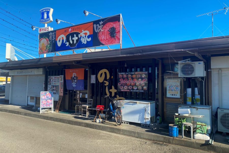 焼津さかなセンターの北側、 東名高速道路、焼津インター近くの 駐車場脇にあります。 焼津さかなセンター目的ではなく のっけ家さん目的だけで行くなら 焼津インター取付道路から 駐車場に入ると行きやすいです。 平日の昼でしたが 開店前から数人が待っていました。 店内はテーブル席が7〜8席くらいと カウンターに5〜6席くらいと そんなに広くないので 土日等は待つタイミングもありそうです。 それでもランチメニューだったら 提供も早いので、回転は良さそうです。 日替り4種丼をいただきましたが 酢飯と普通のご飯が選べ、 ご飯大盛りは春先までは無料でしたが プラス100円になっています。 ガリは、回転寿司店にあるような 容器に入っていて、食べ放題?!です。 丼の刺身は、厚みこそ無いですが 食べやすいサイズだと思います。 厚みや食べ応えを求めるなら 他の通常メニューにも沢山の 海鮮丼があるので、 そちらをオススメします。 セットの麺類も、 うどん、そば、きしめん、 ラーメン、まぜそばまで選べます。 後者はプラス50円でした。 さらに味噌汁まで付いてくるので 汁のある麺類をセットすると 結構、おなかいっぱいになります。 一品メニューで マグロほほ肉の唐揚げをいただきましたが 下味がしっかり付いてるので これだけでもご飯が食べれそうです。 白身ではなく、血合の様な見た目と 食感でした。 他にも静岡市等にも店舗があるので そちらの方が行きやすいかもしれません。