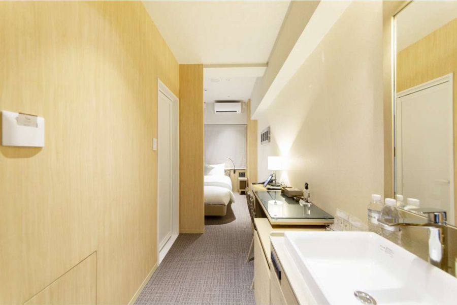 心斎橋駅から歩いて5分圏内にあり、比較的静かで綺麗なホテル。 ホテルまでの通りが細いですが車通りが多く、通行人も多いので道は少し不便でした。 室内は1人で過ごすにはちょうど良いです。 水場が机の並びにあるのはミニマムで私的にはお気に入りポイントでしたが、人によって好みが分かれそうです。 キャリーケースを広げようと思うと玄関付近しか床スペースがないので、そこがマイナスポイント。 お風呂は狭過ぎず、最近のビジネスホテルにしては広い方では? シャワーがファインバブル?で良いものを使用されてますが、霧状で寒いので私は苦手でした。 近くにコンビニもあるので滞在にはとても便利な環境です。 また機会があれば泊まりたいです。