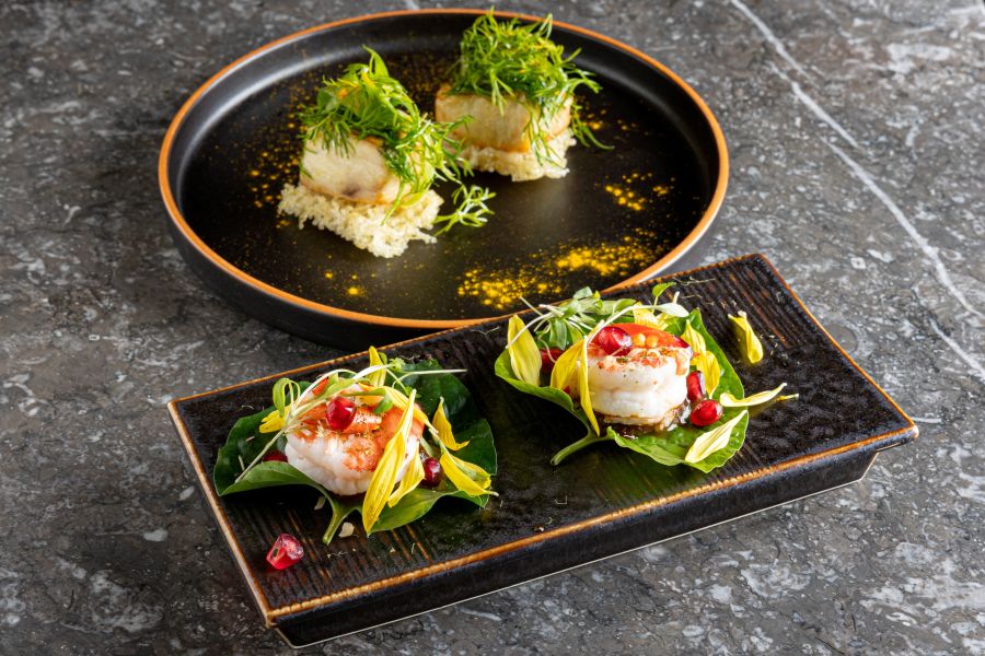 定義にとらわれない食材選びとメニュー展開で、あそびを持たせたアジアン料理。クラシックとモダンが融合したデザインの店内には、4メートルを優に超える巨大なアートが飾られたバーが印象的。メインダイニングは、スカルプチャーとそれを撮り下ろしたアートが鏡の中に映り込むアーティスティックな空間が広がります。タイ・ベトナム料理をベースに日本の四季の食材も取り入れ、定義にとらわれず自由なアレンジを加えたお料理の数々をご堪能ください。
