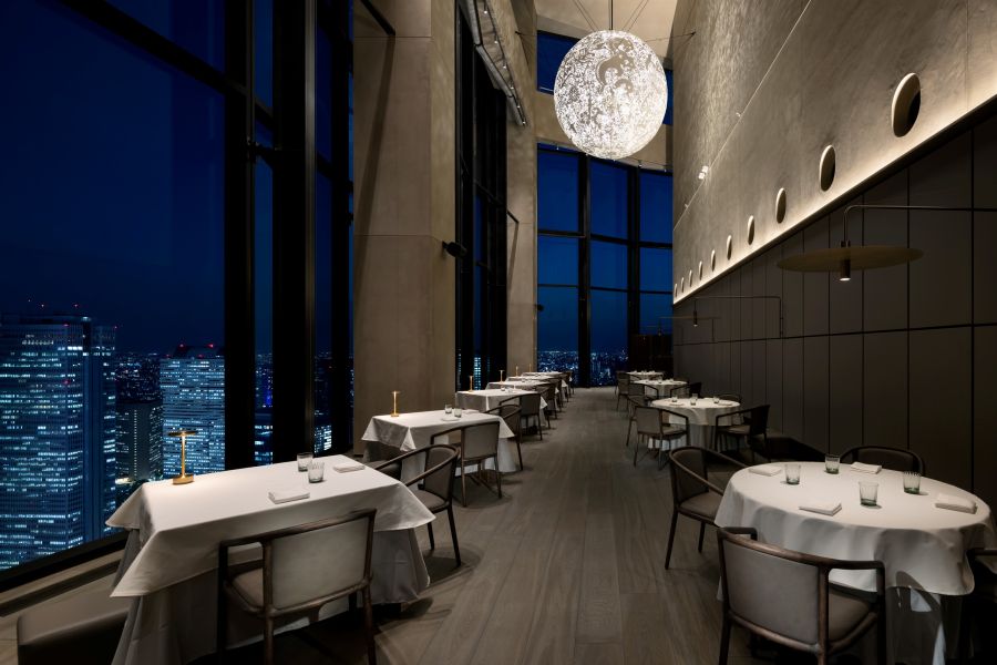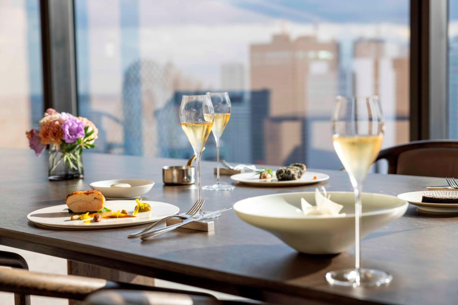 繁華街の喧騒の中、一際高い高層ビルに一歩踏み入れると、静寂の中上品な香りに癒されます。エレベーターで45階まで上がると、そこにこちらのレストランがあります。まさにラグジュアリーで開放感のある店内では、五感で楽しむメニューを堪能出来ます。今回はランチで伺いました。この時期は山陰・中国・四国地方の食材を使った料理でした。メニューには産地と食材のみ記載され、どんな料理かはお楽しみですと粋な計らい。供された料理は、アートの様な、花が散りばめられた美しい一皿、素材とソースの美味しさにうっとりするような一皿。鹿肉を燻した桜のチップの香を楽しむ、何とも趣向が素敵な一皿などなど。デザートも申し分なく、時間をかけて堪能しました。こちらはパノラマも見所ですね。今度はディナーで夜景を観たいです。