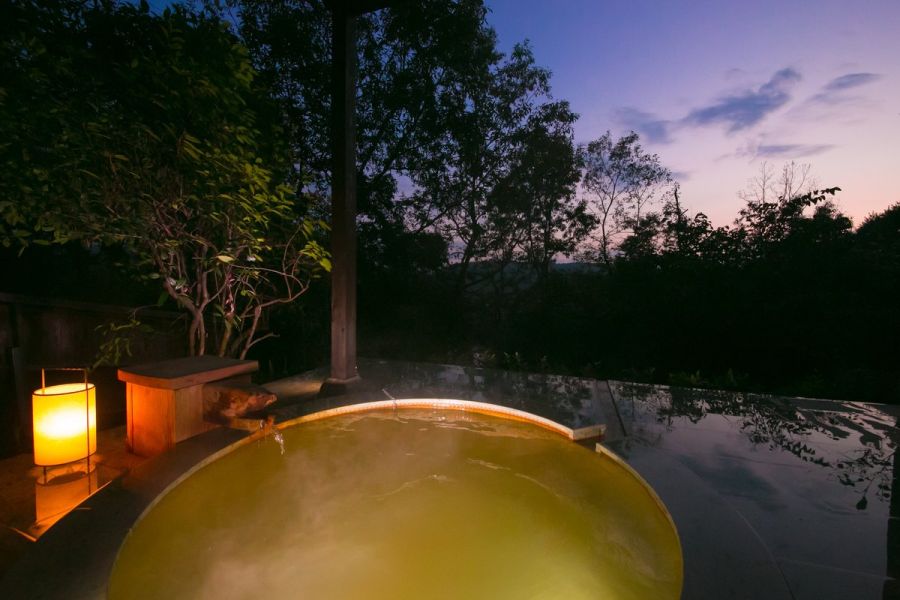 長湯の日本一の炭酸泉を貸切で楽しめるおすすめの宿です。ロビーに鍵が置いてある貸切風呂を自由に使えるシステムでした。 部屋も分散型の宿で広くておしゃれでした。ご飯は部屋食のため落ち着いて食べることができました。部屋の土間部分で食べましたが夕暮れ時の日差しも相まって最高です。 夕食のすき焼きとヤマメの美味しさが忘れられません。朝食は魚を選べますがおすすめは金目鯛かかますです。