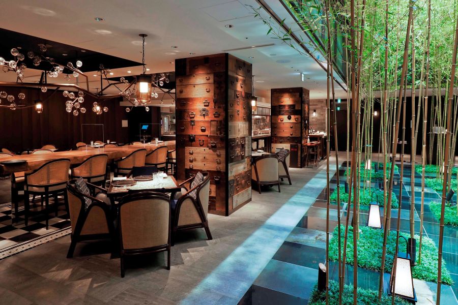 ”Feel so Grill!”がコンセプトのグリルレストラン。スタイリッシュなオープンキッチンでは、シェフが国産牛やシーフード、全国から厳選された新鮮な食材のほか、地元京都の特産品など、素材の旨みを最大限に引き出したグリル料理を提供します。昼の部はメインが選べるセミブッフェスタイル、夜の部はアラカルトやコース料理にて、地下にありながら竹林の眺めがオープンテラスを思わせるレストランです。