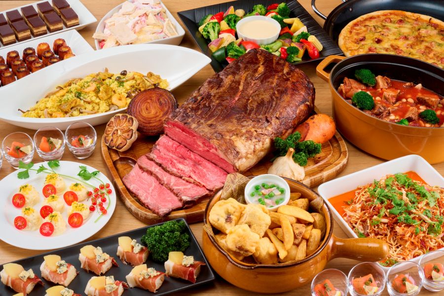 帝国ホテル大阪の一階にあり、ランチはとても賑わっています。予約がないとなかなか入れないと思います。 サラダ、揚げ物には、いくつものソースがあり、味変しながら楽しむことができます。 自分でハンバーガーを作る事もでき、楽しみながら食事ができます。 マカロニグラタン、鶏の甘酢、焼きそば、唐揚げ、サーモンのムニエルなど色々な料理が楽しめます。デザートは、オペラやモンブラン、りんごのタルトなど他にもいくつかあります。また、ソフトクリームもあるので、食後に甘い物を食べ過ぎてしまいます。飲み物は、コーヒーや紅茶などが自由に飲めます。