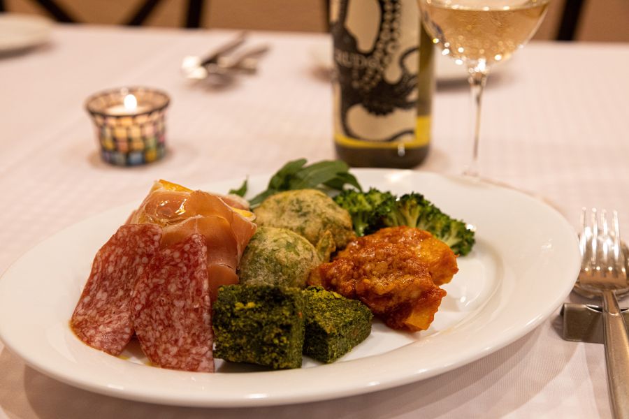 複数人でディナーコースをいただきました。凝った前菜、おいしいパスタ、ボリューム満点の肉料理と大変おいしくいただきました。なんといってもオステリアという名前通り、種類が豊富なワインを楽しめました。イタリアビールや締めのコーヒーなどもおいしかった。 注文も迅速に対応していただき、良い時間を過ごせました。 ランチで再訪しました。 サーモンのパスタの大盛りを注文。 熱々で美味しかったです。少々、塩味が足らないので、自分で足したらさらに良い感じでした。