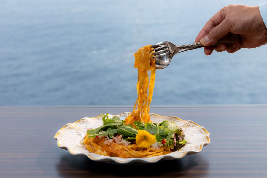 伊豆の断崖に佇むカフェレストラン「花の妖精」。“クラシカルな空間に潜むフォトジェニックな驚き”をテーマに、クラシカルで落ち着いた店内の先で、窓一面に相模灘の大パノラマが広がります。名物は季節のフルーツパフェ。何層にも重なる彩りはまるでアートのようで、食べてしまうのがもったいないほど。クラシカル×絶景×スイーツを一枚に収めれば、思わずシェアしたくなる時間に。カフェ利用はもちろん、自家製カレーやズワイガニのフェットチーネなどランチにも対応。季節ごとに移ろう景観と味わいをお楽しみください。