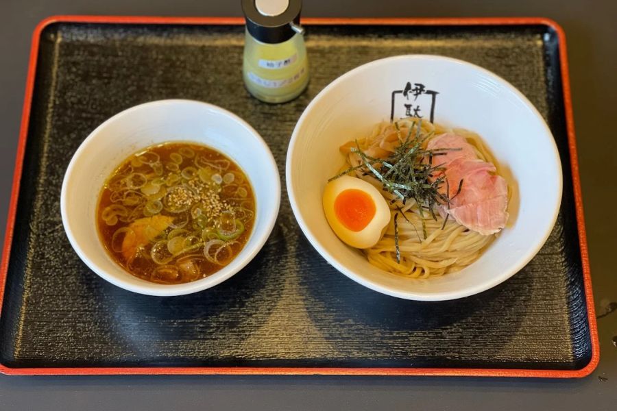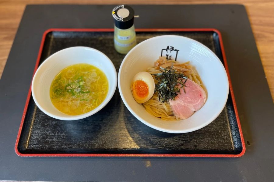 2025.09.14 夏限定の冷やし担々麺が食べたくて訪問。 前回来たのは出店したばかりの年だったから17年ぶりくらいか…? 12:30過ぎの入店と、ランチタイムど真ん中の到着でしたが、運良く席が空いていて、待ち時間無しで着席できました。 入店するとまず、目の前にあるタッチパネル式の券売機で食券を購入します。 目あての冷やし担々麺1,200円にライス180円を追加。 食券購入後、スタッフさんの案内に従い着席。 待つこと15分ほどで提供していただきました。 冷やし担々麺、見た目は真っ赤なラー油が目立ちますがスープの辛みはかなり抑え目で、ほんのり辛さが残る程度。 具材はナッツ入りの肉味噌に煮卵、キクラゲ、チャーシュー、水菜、ネギ。 麺は通常のラーメンとは異なるようで、冷やし中華の麺のような食感で柔らか目でした。 伊駄天さんは麺の量が少ないように記憶していましたが、思ったより量は多く感じました。 美味しくいただきましたが、個人的には麺の種類と辛さの度合いが好みではなかったので、味は普通と言うことで☆3。 スタッフさんはテキパキ動かれていて、特にボーイッシュな印象の女性の方が、よく通る優しい声でプロフェッショナルな接客をされていて、とても気持ちが良かったです。 店内は黒を基調とした落ち着いた造りで清潔でした。 ごちそうさまでした。