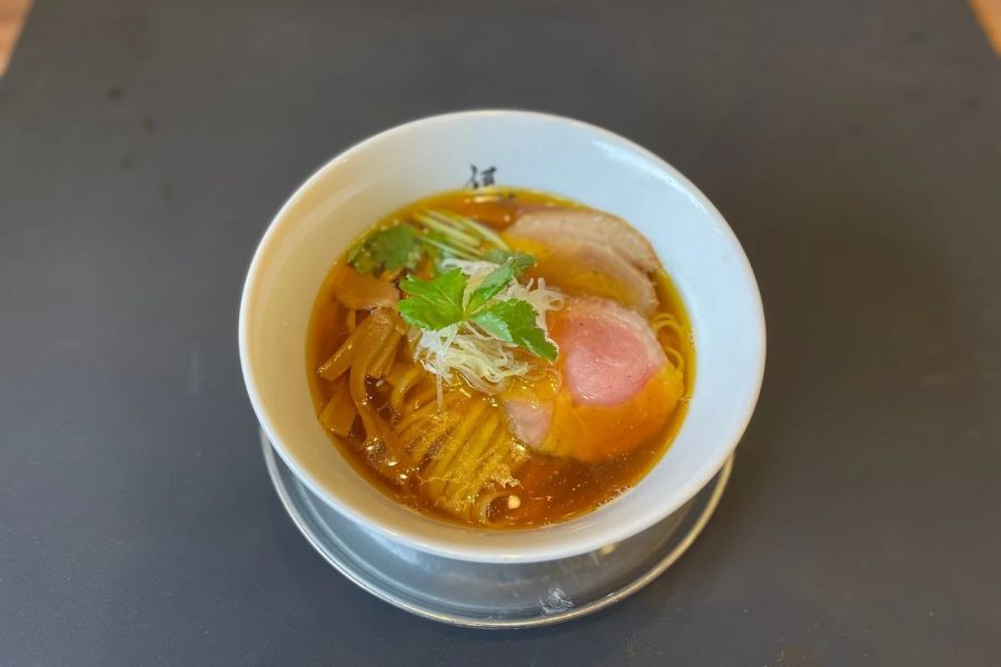 静岡駅近くの人気ラーメン店、黒をベースとした外観がお洒落なお店です。 初めての来店でしたので店員さんに人気のメニューをいくつか聞いて、塩らー麺980円を注文しました。 届いたラーメンは見た目にもかなり上品です。スープは黄色く透き通っており、塩ベースの薄めの味ながら、オイリーなコクもあります。麺もちょうどよい太さで、おいしくいただくことができました。 サイドメニューも充実しており、ユーリンチーなど気になるメニューもあります。次回訪問時には試してみたいと思います!