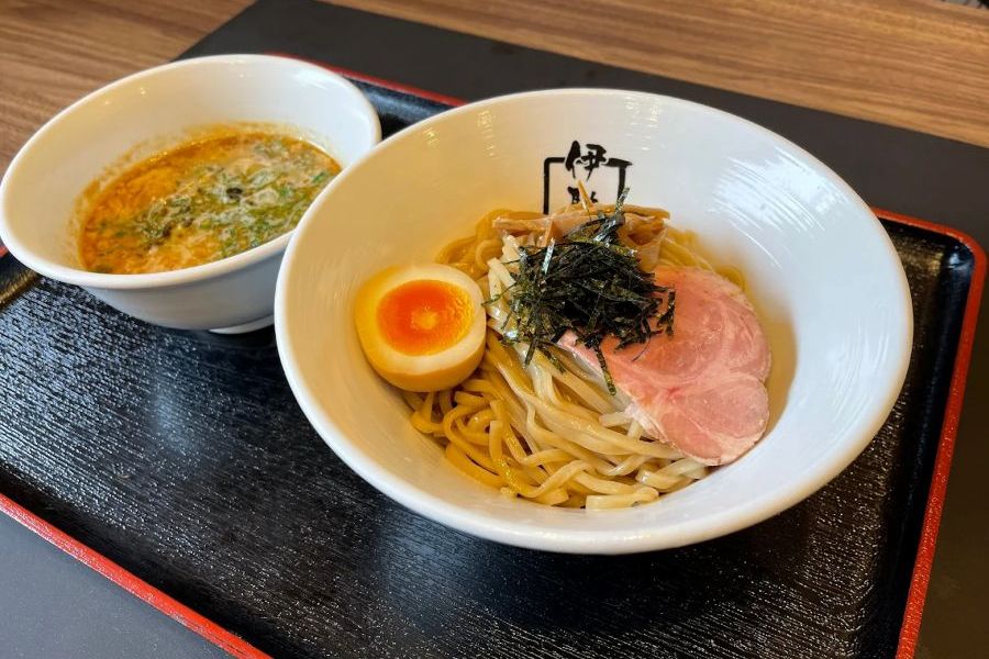 昼も少し回った時間。暖簾を潜って入店したら食器が残るテーブルがチラホラ。 ちょうどお客さんの入れ替わりのナイスタイミングだった様で待たずに着席。 藤枝のお店から焼津に移り綺麗で広くなり、テーブル席6〜7席とカウンター席が5〜6席と天井も高く広い店内。 思い出した様に伺い、変わらぬ味で楽しませてくれるお店だ。 ラーメン、つけ麺、季節の創作ラーメンと飽きさせない豊富なメニュー。 今回は『辛つけ麺 暁』をオーダー。 平打ち麺のもっちりとした食感で喉越しも良い麺を、ピリリと辛さが鼻孔に昇るクセになる熱々のつけ汁に潜らせ啜る。 噛むごとにモチモチとしたしっかりした食感。 噛む。啜る。のみこむ。 只、この作業だけで口の中が幸福感に包まれる。 『やはり美味い…。』 あっという間の1杯に、大盛り分の替玉をお願いすると、つけ汁を温め直してくれる気遣いが嬉しい。(以前寄った静岡店でも同様の申し出を貰ったので伊駄天ならではのサービスだろう。) 別椀に盛られてきた替玉の麺を、再び湯気の昇るつけ汁にダイブ!! 熱々の麺と香りを味わえる楽しみを、再び感じながら食べ進めれば、あっという間の完食でした。 次回は定番を頼もうかな。と思いながらお店を後にしました。 美味しい1杯をありがとう御座いました。 【追記】LINEアカウントが作られてました。 スタンプカード機能も此方に纏めた様子です。 特典あるので伊駄天ファンにも是非オススメです。