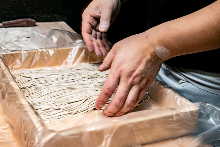 気軽に使える、上質な高輪の蕎麦屋。その時期に最良の蕎麦粉を使い、店内で打つ香り高い手打ち蕎麦を楽しめます。ざる蕎麦はもちろん、ぶっかけ蕎麦など、バリエーションも豊かに蕎麦をお召し上がりいただけます。料理長や自社バイヤーが全国隔離から買い付ける選りすぐりの食材の天ぷらや、つまみにぴったりな蕎麦前の一品料理。日本酒、焼酎はもちろん、ワインにもこだわり、和食のおいしさを引き立てる酒を豊富にご用意。食事はもちろん、酒場としても活用できる使い勝手のいい蕎麦屋です。