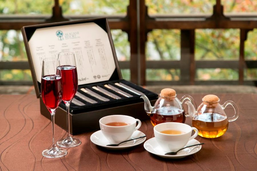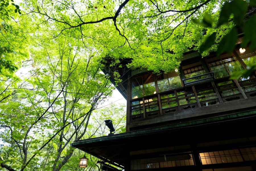多くの文化財が点在する古都・京都。その地を代表する東山の一角、約700坪の敷地を有する「アカガネリゾート京都東山1925」内に当店はございます。重厚な門をくぐり、庭を進んだ先に現れるのは「望楼棟」と呼ばれる“はなれ”。通常はご案内していないこの特別な空間で、ゆったりとしたティータイムをお過ごしいただけます。八坂の塔をイメージし、五段のお重でご用意するスイーツや軽食は、アカガネリゾート専属パティシエによる自慢の品々。上林春松本店のオリジナル煎茶やコーヒー、紅茶とともに、静寂と緑に包まれた贅沢なひとときをご堪能ください。