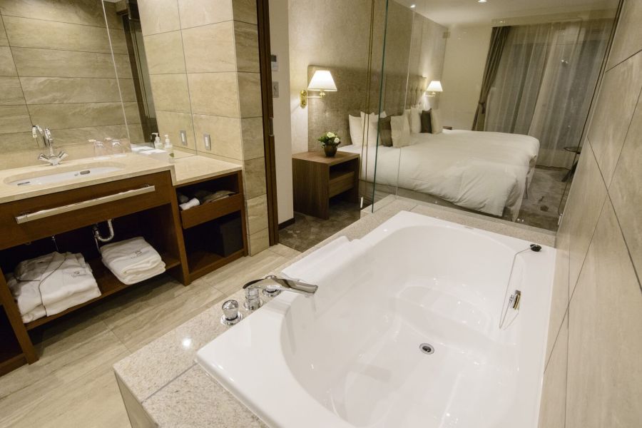 お盆の繁忙期に夫婦2名で宿泊。 館内、客室共に清掃が行き届いており清潔感には非常に満足。宿泊者向けにカフェ&バーのスペースが開放されているため、散策後の休憩に度々利用した。ホテルから徒歩で商店街など各所楽しめるため疲労度が少なくゆっくり過ごせた。 14時からはスパークリングワインをはじめとするドリンクのフリーフローサービスがあり、宿泊者の多くが利用していた。 個人的には露天風呂が良かった。とても気持ちが良いので朝夕利用した。 外観はじめ調度品にもこだわりがあるようで、落ち着いた雰囲気の中でリラックスできる。スタッフの方は若い方が多く諸々のオペレーションに若干ぎこちない部分があったが親切で温かく、また宿泊したいと思えた。