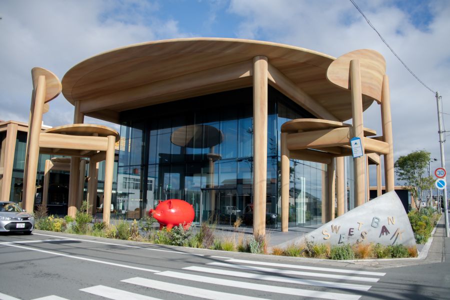 2025.12 うなぎパイのファクトリーに行くつもりでしたが、過去に何度も行った事があるからなぁと調べてみると、こちらを発見!さっそく行ってみました。 平日の午後だからか、駐車場も空いてました。 駐車場から見る建物にワクワク♪ 屋上から垂れ下がる新聞の裏にもコンセントがあるので見てみて! お昼は食べていたのでお茶したかったのですが、発券機の前ですごく悩みました。 ドリンクのみの利用はテイクアウトで との記載‥ よくわからないけど、中で飲むだけはダメという事?? 聞こうにも誰もいないし、しばらく発券機の前で悩んだ後、仕方なく外に出てテイクアウトコーナー行ったけど誰もいない 呼び鈴鳴らしても誰も来ず、音がちいさかったかしらと2回目に鳴らしたら遠くから来てくれました。 テイクアウトのコーナーは建物の間だから風が強くて、寒さに震えながら飲み物を注文、出来上がりをまあまあ待ち 購入後はどこで飲めばいいか尋ねると、建物を入ってすぐのソファーがあるスペースならOKと言われました。 結局、レストラン?では飲み物だけはダメなのね‥ ワクワクしてたのに、なんだかなぁ 飲み物は美味しかったです。 トイレが良いとの口コミもあり行ってみると、可愛い!! 個室毎に内装も違い楽しめました。 お土産コーナーもクリスマスや新年バージョンなどあり、いろいろ買うことができました。 お土産さんの方も感じよく、レストラン?の社員さんらしき女性も感じよくて、頑張りが伝わり好感が持てました。 マスコットキャラが可愛かったので、おしゃれなグッズがあれば買うのに。 思うところはいろいろありましたが、凝っていて楽しかったです。