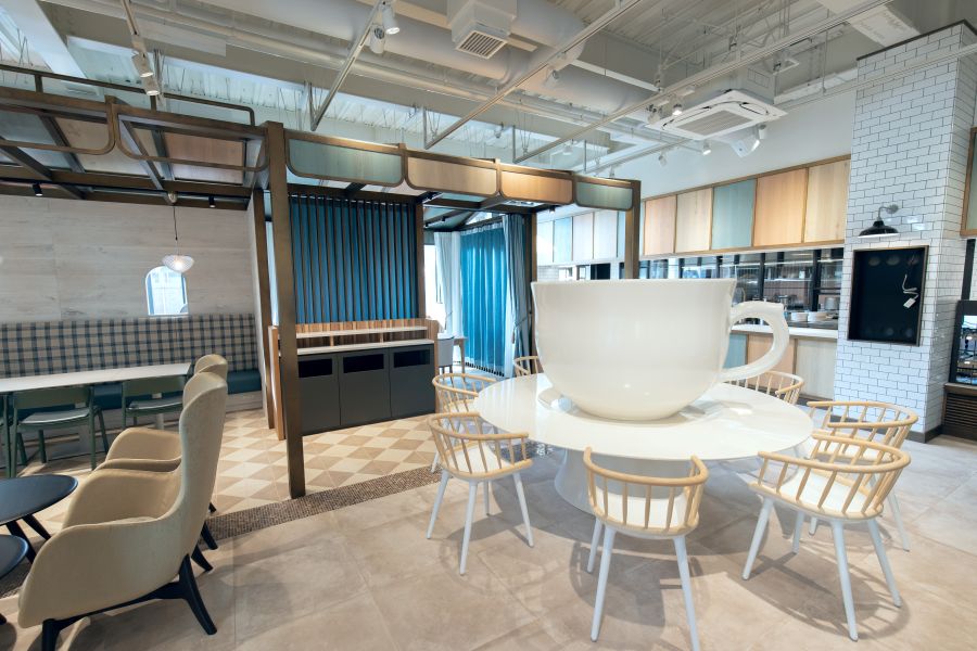 建物もスイーツも映え良好 浜松小旅行の行先のひとつとして。 【外観・内装等】 ・春華堂の旗艦店「スイーツバンク」内にある直営のカフェ&ベーカリー。浜松の旬の食材を使っている。 ・外観は「巨大なイスとテーブル」でユニーク。「SNS映えする建築」がテーマ。 ・なかはスケール×13の家具が出迎えてくれる。「ガリバー気分」がテーマ。 ・遊びごころがあっていい。使い勝手悪そうやけど… 【注文】 ・ブリオッシュワッフルと空の旅 ¥990 ・マサラダ バニラなチョコレート ¥380 【感想】 ・期間限定モノ2点をチョイス。 ・ワッフルは映え良好でした。
