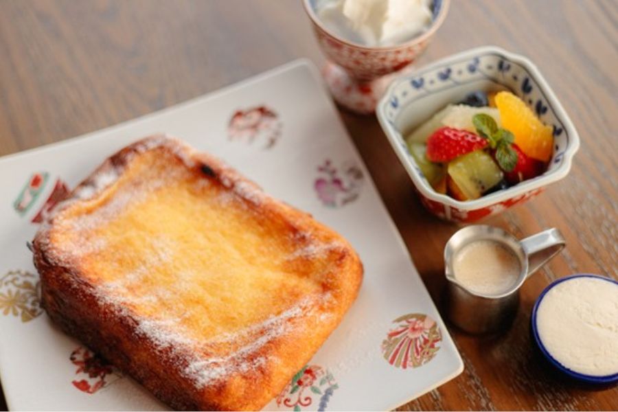 空間美が素晴らしい!何度も訪れたくなるカフェ♡ 京セラ美術館へ遊びに行った際に、ふらっと立ち寄って見たら、空間が広くて、すごくオシャレでかっこよくて、すぐに気に入ってしまいました♡ バーカウンターもあるし、いろんなお席があって、選ぶお席によって雰囲気も変わりそう! 私が利用したときは、テラス席を利用している方はいなかったけど、テラス席も広くてゆったり過ごすのにぴったり!ここは何度も訪れたくなるカフェ。 15:00以降にオーダーできるメニュー、モダンテラスのフレンチトースト オレンジの花の蜂蜜添え と季節のフルーツタルトをオーダー。進々堂山形食パンを使用しているのでおいしくないわけがない。ホイップクリームと蜂蜜で甘々にして頂きました! 季節のフルーツタルトもおいしくって◎!何個も食べたくなる~~! 軽くお茶できたら…と、寄っただけでしたが、我慢できずに、スフレオムハヤシライスもオーダー。サイズ感的には喫茶店で出てくる小ぶりサイズ。おやつタイムの食事なのに、あっという間に食べてしまったおいしさです。 また、ランチでもカフェ利用でも再訪したいカフェです!